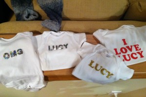 We were so excited for Lucy’s arrival that on Thanksgiving night, we decorated onesies in anticipation. They turned out super-cute!